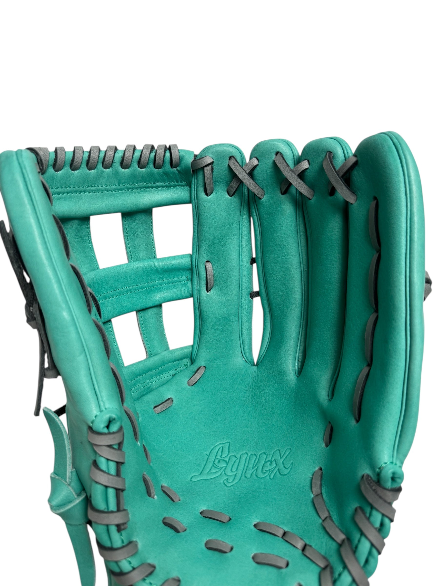 Mint/Grey Kip Leather Laced H-Web Handcrafted Glove - 13.5”